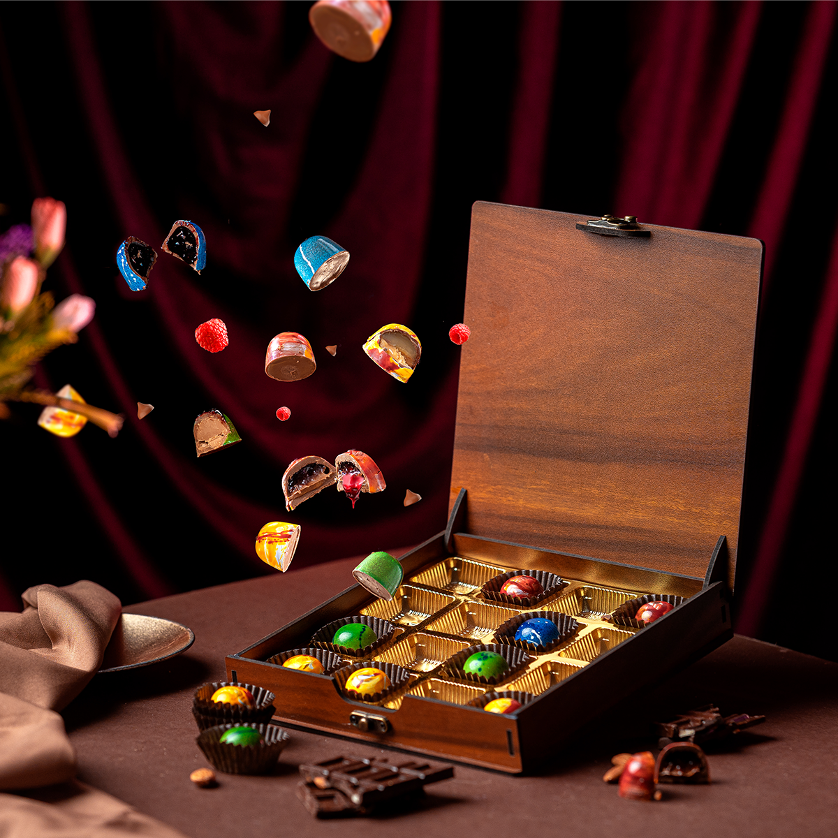 Indulge in the velvety richness of each chocolate as it slowly melts on your palate, releasing its exquisite flavors. From the robust and slightly bitter notes of dark chocolate to the creamy and balanced sweetness of milk chocolate, every bite is a moment of pure bliss.